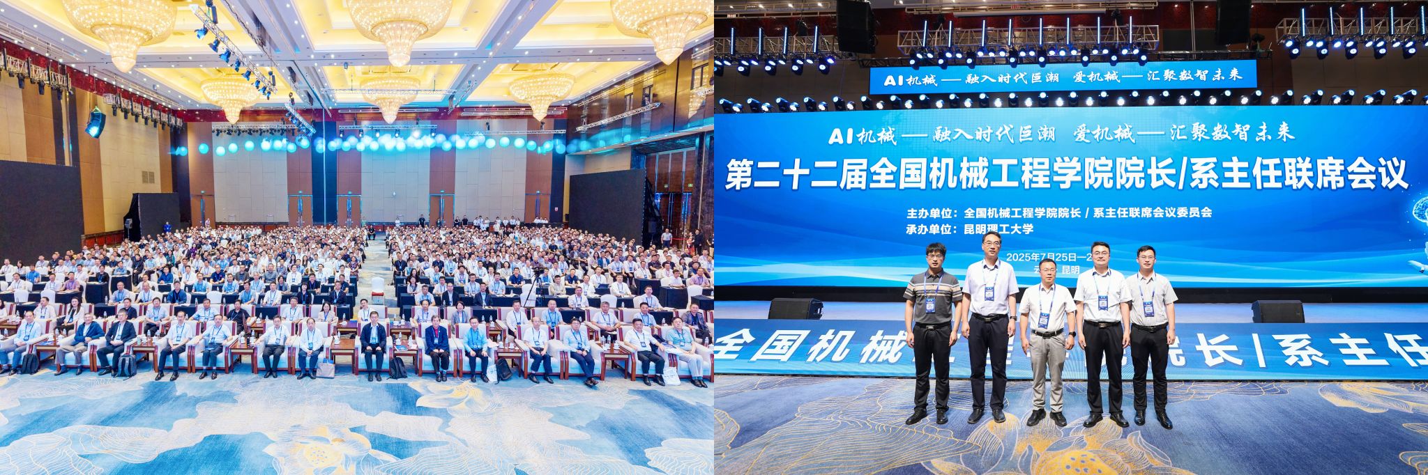 7月25至27日,由全国机械工程学院院长/系主任联席会议委员会主办、昆明理工大学承办的第二十二届全国机械工程学院院长/系主任联席会议在昆明举行。大会主席、中国工程院院士、大连理工大学原校长郭东明等来自全国机械领域300余所高校的校领导、机械工程学院院长、系主任及相关企业代表1500余人共襄盛会。本届大会以“AI机械—融入时代巨潮,爱机械—汇聚数智未来”为主题,旨在为全国机械工程同行们搭建深度交流平台,共同推动AI赋能机械工程拔尖创新人才培养、学科和专业建设、教育教学模式创新。永利官网院长明平美一行参加了此次会议。