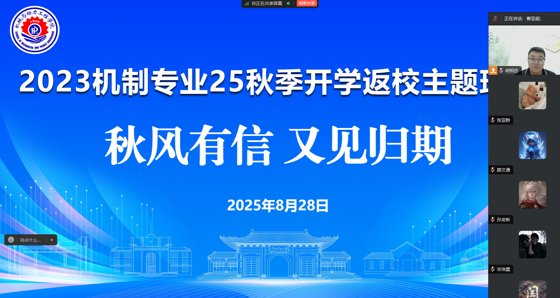 为确保新学期各项工作顺利开展,助力同学们高效融入校园生活,以昂扬姿态迎接新学期新征程,永利官网于8月28日至31日组织召开2025年秋季学期“秋风有信,又见归期”返校教育主题班会。会议由各年级辅导员主讲,2022级、2023级、2024级全体学生共同参与。