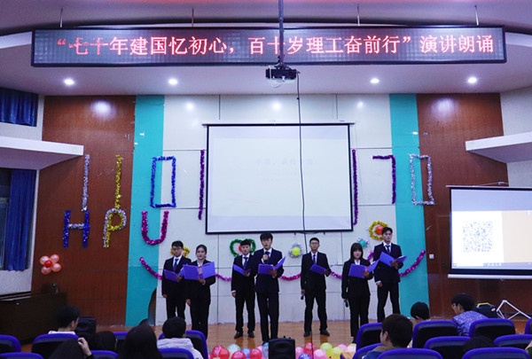 为了贯彻落实习近平主席对于时代青年的新期望,弘扬爱国主义精神,增进各学院之间的情谊,12月21日,机械、电气、土木、工商学院宣传中心特于新中国成立七十周年、建校一百一十周年之际于工商MBA报告厅举办“七十年建国忆初心,百岁理工奋前行”演讲朗诵比赛。