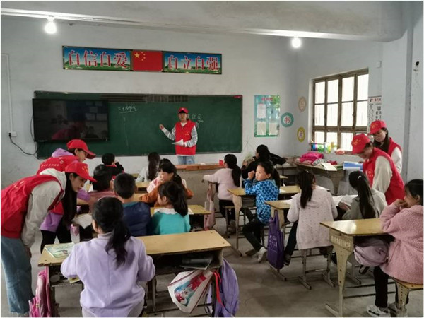 志愿者到达支教地点后,按计划迅速布置了支教课堂。课程开始后,志愿者直接引入主题,在黑板上抄下了二十四节气歌,随后志愿者们通过提问,讲述故事等方式让孩子们更加深入的了解了中国二十四节气;同时,志愿者们还将诗歌与游戏结合,让孩子们在游戏的乐趣中了解传统文化知识。最后,志愿者带领孩子们到操场做游戏,在欢声笑语中结束了支教活动。