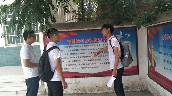 当天调研队到达离温县北冷乡政府1.5公里的东周村,该村庄在2017年底脱贫,通过村委会信息,大家了解到东周村由县残联和农业局帮扶,全村累计脱贫53户,未脱贫贫困户7户,未脱贫原因分别是因病致贫,因学致贫,因残致贫;之后,队员们在村庄进行随机调查问卷,询问脱贫后的家庭情况,村庄变化等,并获得了部分调研数据。随后,调研队又继续走访了西周村。