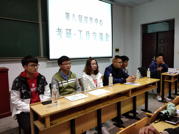 为帮助大家了解更多考研与就业的相关信息,4月27日晚,永利官网宣传中心在院楼102室举办了“考研·工作交流会”。宣传中心5位在2019年考研和就业中取得成功的往届成员应邀作了个人分享,宣传中心全体成员参加了交流会。