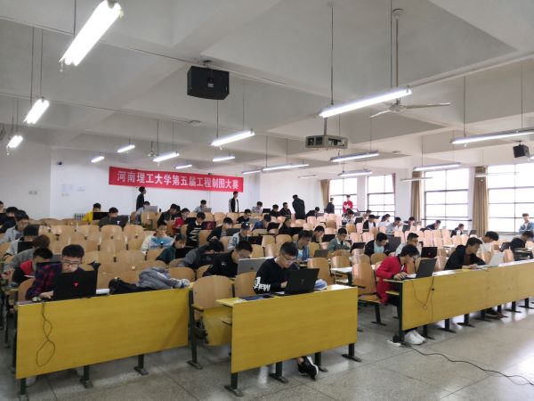 大赛分为计算机建模比赛和尺规绘图比赛两部分,计算机建模比赛于上午在机械院楼举行,尺规绘图比赛于晚上在二号教学楼五楼绘图教室举行。计算机建模考试需要在3小时内根据给出的零件图、轴测图和文字说明绘制零件的三维模型、按要求装配成装配体并绘制零件图和装配图。尺规绘图需要选手在1个半小时内根据轴测图绘制零件工作图,真实考察学生的绘图专业技能。参赛成员在考场内努力思考,认真答题,比赛氛围颇为紧张。