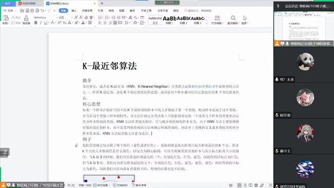 首先,由主讲人陈子坤宣布此次培训正式开始。随后,陈子坤为近期视觉组预备精英的作业完成情况做总结,总结作业中所出现的问题,并为今后的作业提出进一步的要求。接下来,陈子坤为预备精英们讲解了knn算法的原理以及应用等一系列常见的问题。主要内容讲解完毕后,各位预备精英提出自己在学习过程中遇到的问题。陈子坤详细讲解了预备精英们所遇到的问题,并给出一些建议和解决方法。问答环节结束后,陈子坤为预备精英们布置下一阶段的学习任务,强调寒假学习注意事项,勉励预备精英们不断进步。最后,陈子坤宣布此次培训圆满结束,全体成员退出腾讯会议。
